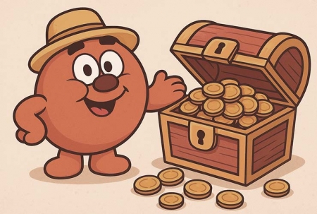 Воспитатель читает: Ребята, спасибо вам. Вы помогли найти сундук сокровищ. За это вам всем полагается по монетке из сундука.