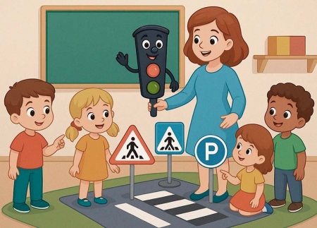 Светофорчик: А сейчас мы проверим, как вы знаете знаки дорожного движения.