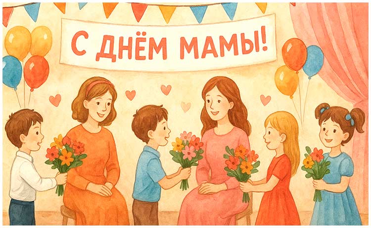 - Во всех городах дети готовят для своих любимых мам подарки. В эти минуты в детском саду №.. проходит праздник. Смотрите прямую трансляцию из музыкального зала.
