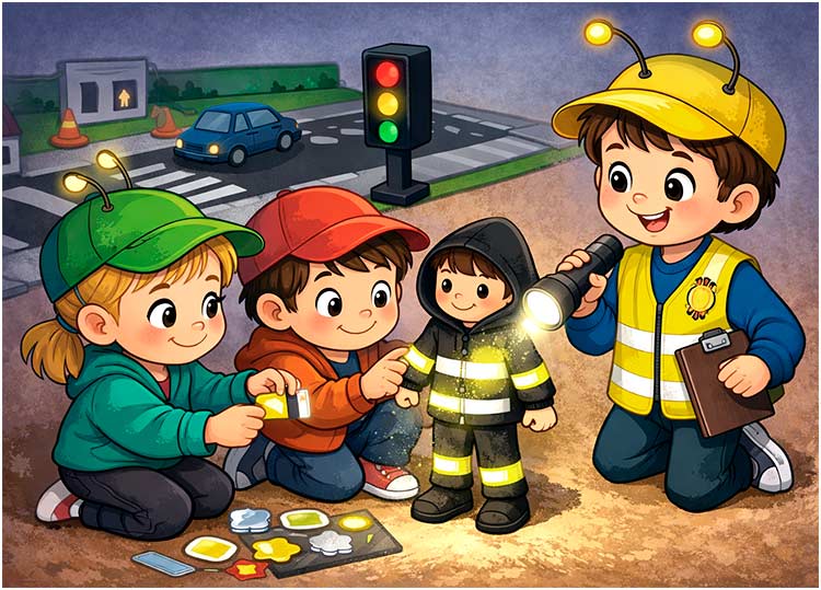 - Вы узнали, что светоотражатели - это суперсила пешехода в темноте, и научились безопасно переходить дорогу.