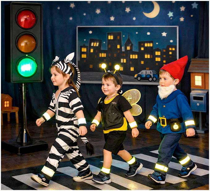 Цель: формирование у детей 5–7 лет понимания важности использования световозвращающих элементов и закрепление основных правил безопасного перехода дороги.
