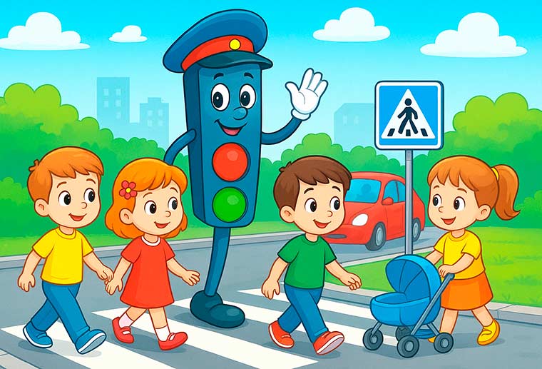 Светофорик: Молодцы, ребята! Вы такие внимательные и все правила знаете!