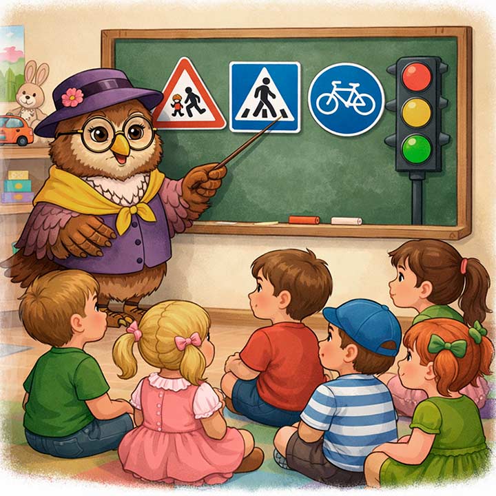 Интерактивное занятие по правилам дорожного движения помогает детям старшей группы закрепить знания о безопасном поведении на улице и в транспорте. Игровая форма с заданиями от мудрой тётушки Совы делает обучение интересным и легко запоминающимся.