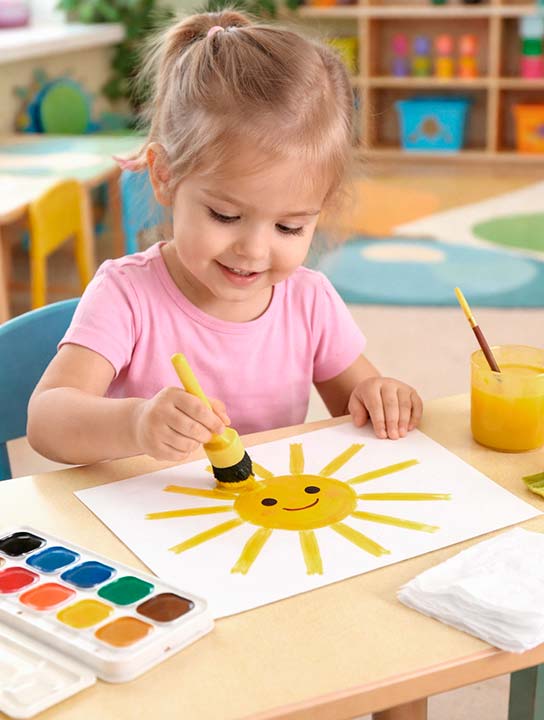 Дети рисуют, в это время звучит фонограмма детской песенки "Солнышко".