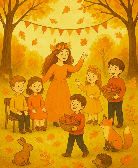 Цель мероприятия: формировать у детей представления об осенних изменениях в природе, развивать умение выражать свои чувства и мысли через игры, песни и танцы.