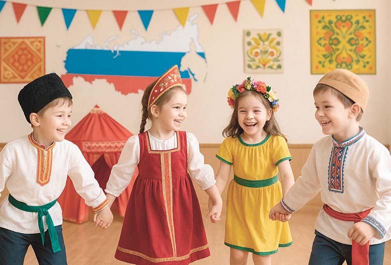 Праздничное мероприятие «В кругу друзей» посвящено Дню народного единства и знакомит дошкольников с культурой и традициями народов России через подвижные игры и веселые конкурсы.
