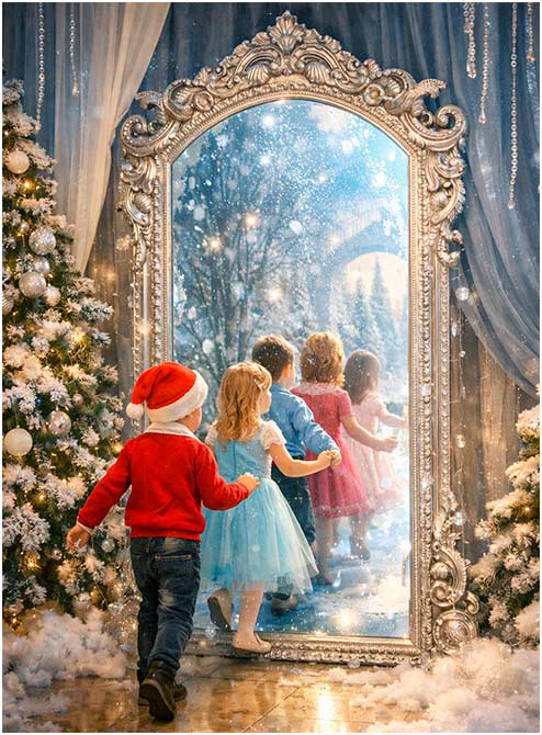 Волшебное путешествие в мир Зазеркалья помогает детям через игру, танец и сказочных персонажей восстановить дружбу Зимы и Мороза Ивановича и вернуть Новый год.