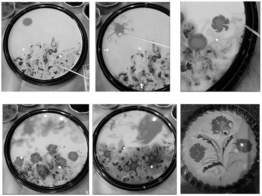 В качестве жидкого холста для техники эбру можно использовать молоко. Чем больше будет его жирность, тем лучше и интересней получится результат. И краски можно сделать самостоятельно.