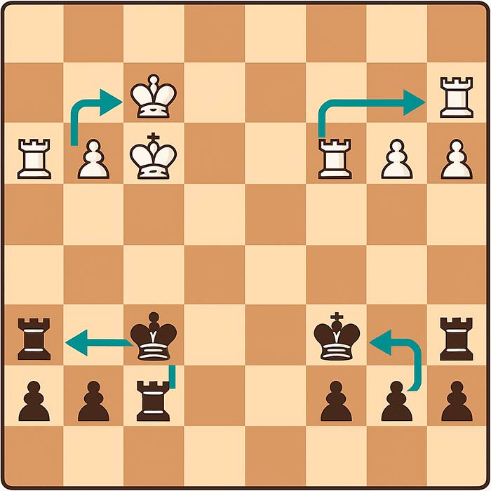 А вот находиться под ударом в момент рокировки ладья имеет право, и пройти через битое поле она тоже может. В последнем случае речь идет только о длинной рокировке, а битыми могут быть поля b1 и b8 соответственно для белых и черных.