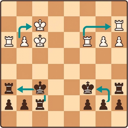 Но во время превращения пешка уходит с доски, а на ее место ставится любая фигура того же цвета, кроме короля. Оказывается, в шахматах есть еще один особенный ход, который совершают одновременно две фигуры, и при этом обе они остаются на доске.