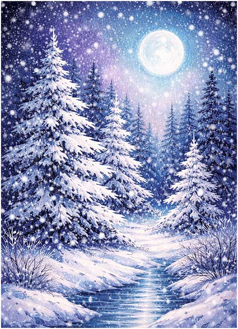 - Мелкий снег выполняем "набрызгом". (наносим кистью на зубную щетку белый цвет, затем в правой руке щетка, в левой - расческа, выполняем движения щеткой через расческу и набрызгиваем снег)