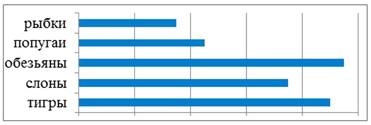 В первую очередь Думка решил узнать, кто из животных самый любимый у жителей планеты. Он провёл опрос и по его результатам нарисовал график: