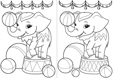 Думка решил купить слонов. Он подошел к площадке, где два слона показывали цирковой номер. Слоны были очень похожи, помоги Думке определить, сколько отличий на картинке и забрать слонов.