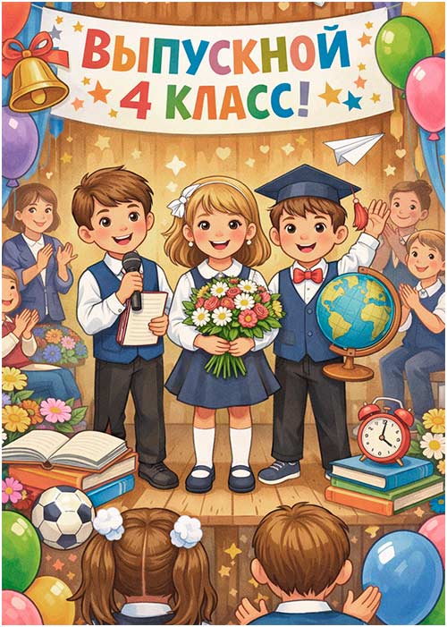Цель мероприятия: создать торжественный и эмоционально насыщенный выпускной праздник, отражающий результаты обучения в начальной школе и укрепляющий связь между учениками, учителями и родителями.