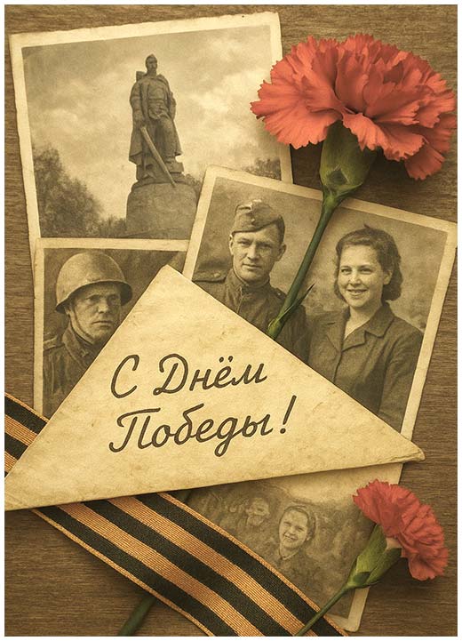 Декорации: зал декорирован в стилистике праздника "9 мая", на центральной стене проекция фото памятника Алеши (памятник русскому солдату в Болгарии), а вокруг него проекции современных фото фронтовиков пожилого возраста в орденах (по возможности, родственников детей-участников праздника)