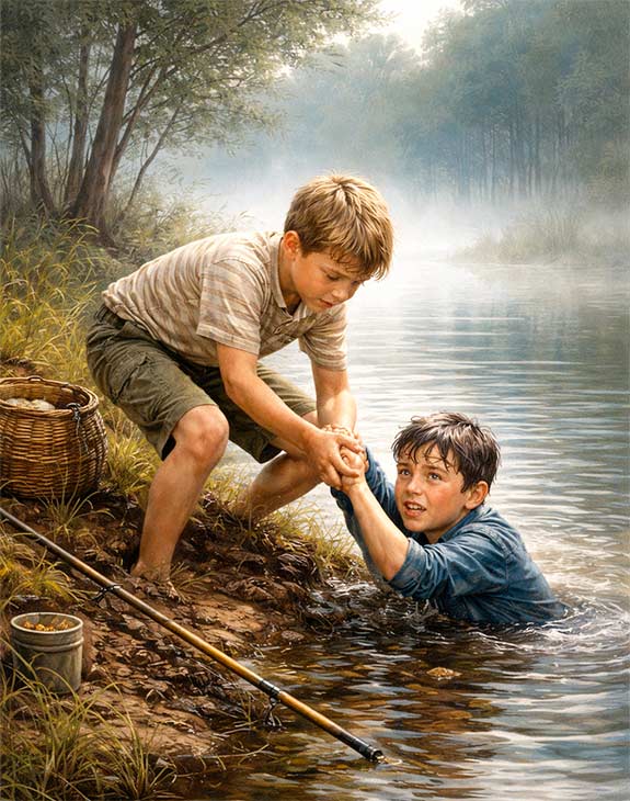 б) Рассказ учит не ходить на рыбалку без сопровождения родителей.
