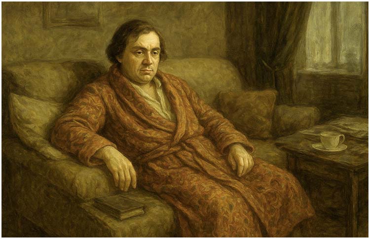 "Халат упоминается постоянно! Он "персидский", "мягкий", "покорный". Это как вторая кожа Обломова, символ его комфортной, но несвободной жизни".