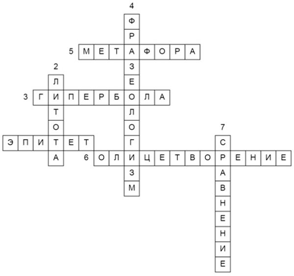 - Сейчас я вам предлагаю решить кроссворд, но для этого вам нужно правильно определить средства выразительности в предложенных вам предложениях.