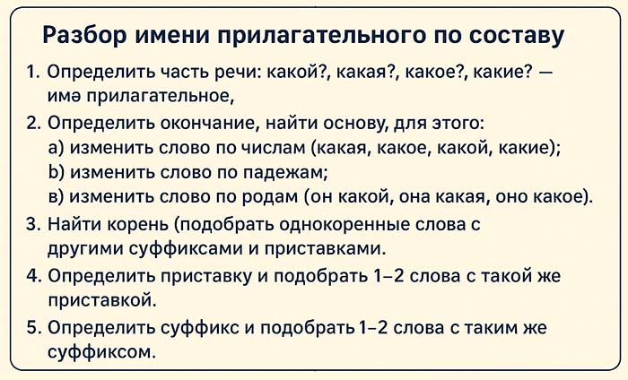 Разбор слова по составу помогает лучше понять его строение, выделить основу, корень, приставку, суффикс и окончание. Ниже представлены схемы морфемного разбора для разных частей речи: существительного, прилагательного и глагола.